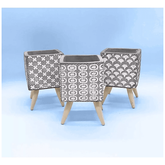 Agrega un toque decorativo con estilo moderno y nostálgico a cualquier espacio con este set de 3 macetas cuadradas con patas de madera integradas, cada maceta presenta un diseño nórdico distinto, pintado a mano, lo que las convierte en piezas únicas y llamativas para realzar salas, oficinas o rincones especiales. 🌿