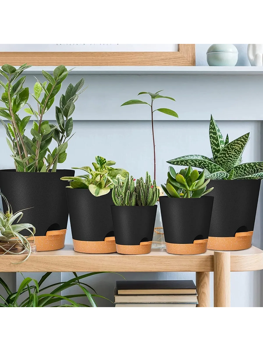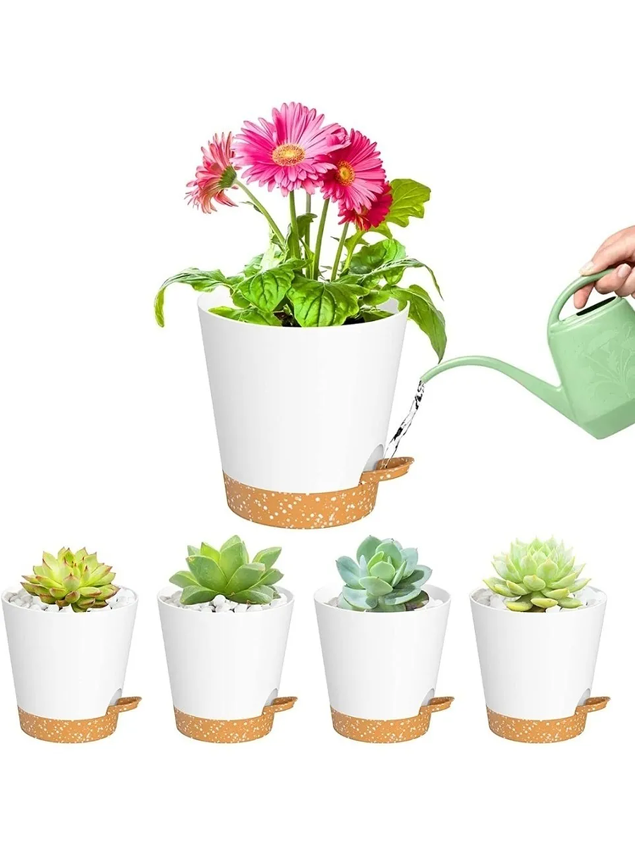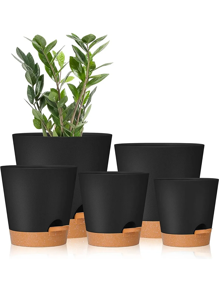 Juego Macetas Plástica Sistema Auto riego x5 Unidades 12 Centímetros Diámetro