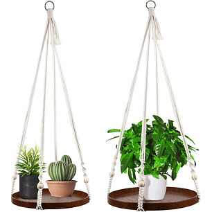 Dale un toque bohemio y elegante a tu hogar o jardín con este set completo que incluye 3 colgadores de macramé hechos a mano y 3 macetas plásticas con bandeja, perfectos para decorar cualquier espacio con estilo y funcionalidad.