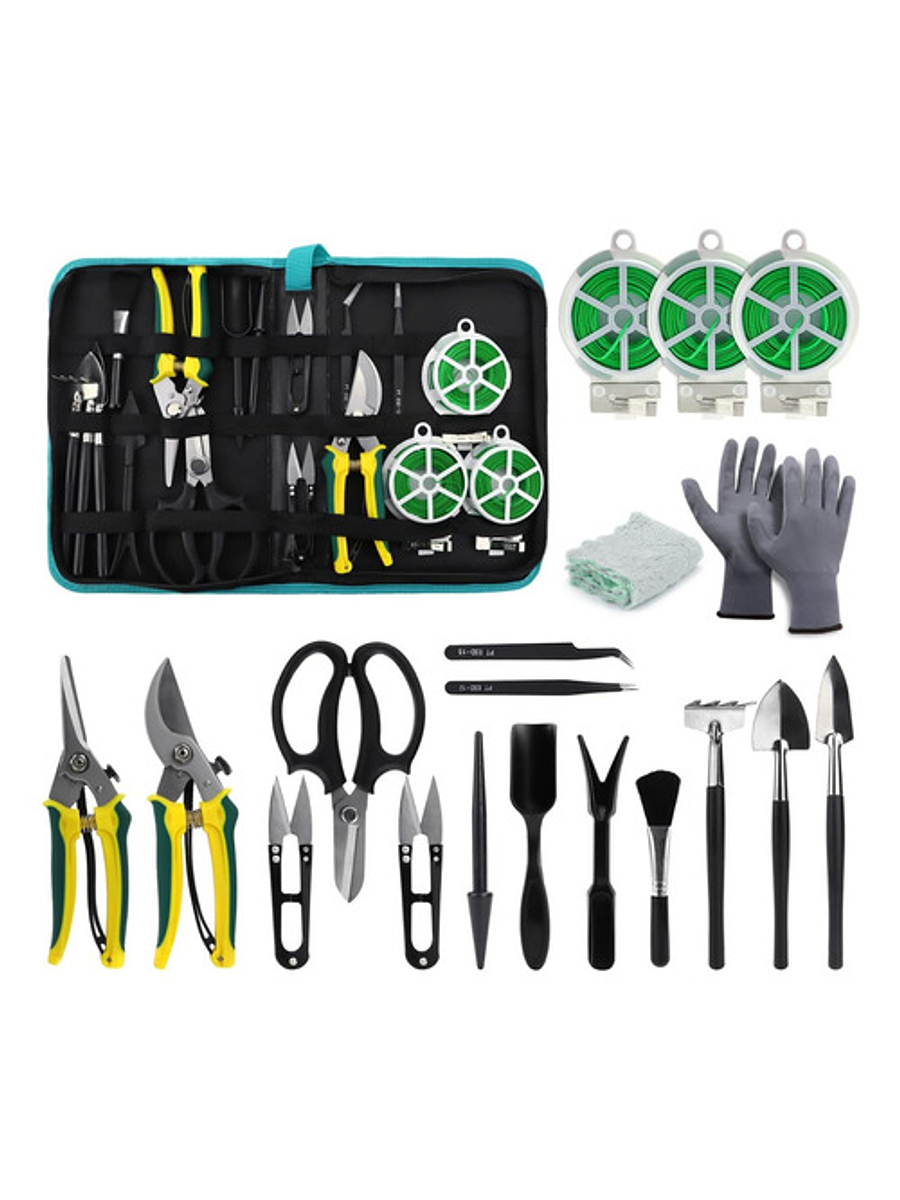 Este completo kit incluye 20 herramientas esenciales para la jardinería de precisión, ideal para bonsáis, suculentas y plantas delicadas, viene en un estuche organizado para que nunca pierdas tus herramientas. 🌱