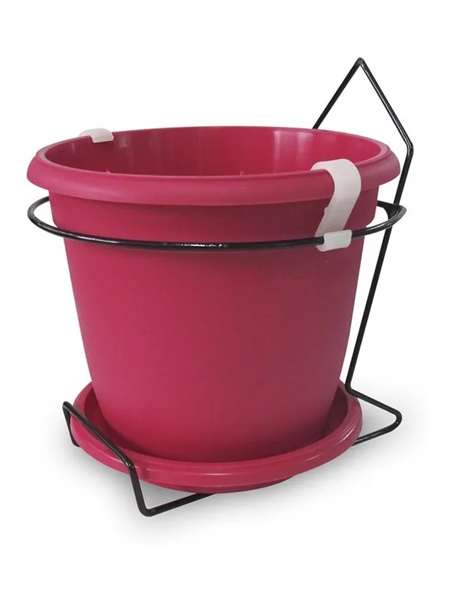 Maceta plástica colores soporte pared más plato 18cm diámetro x15cm