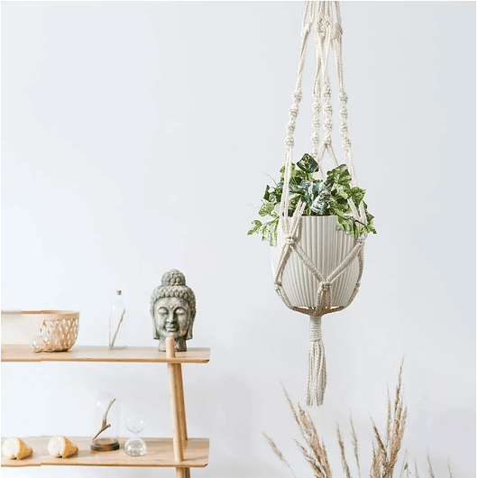 Fabricada con plástico grueso y resistente, es liviana pero duradera, no tóxica ni frágil. Perfecta para colocar en interiores, en estantes, alfeizares o incluso en macramé colgante. ✨