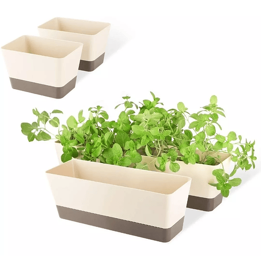 Con medidas de 30,5 cm de largo x 9,7 cm de ancho x 8,5 cm de alto, presenta un elegante acabado en beige claro, acompañado de un plato recogedor en color moca oscuro incluido, que ayuda a mantener tus superficies protegidas y libres de derrames, su forma rectangular la convierte en una opción versátil para diferentes tipos de plantas. 🌿