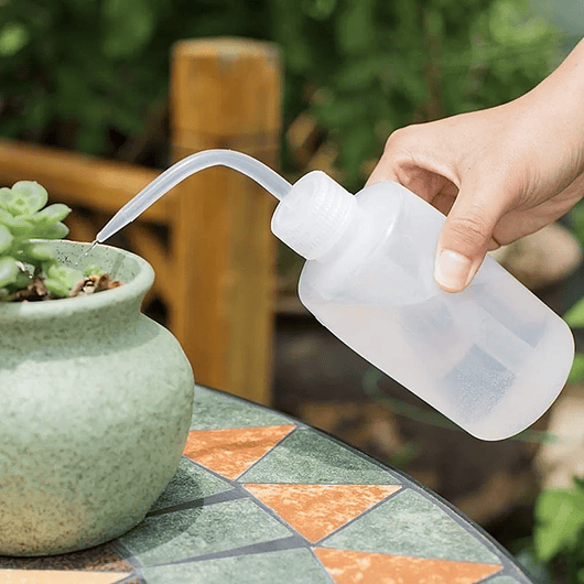Incluye una botella de plástico de 8.5 oz, perfecta para regar plantas pequeñas como cactus o suculentas 🌵.