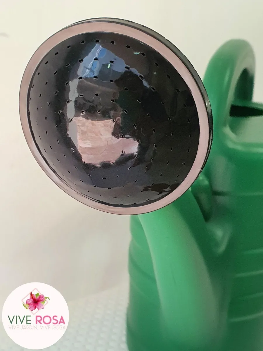Riega tus plantas con delicadeza usando esta regadera con salida de agua en forma de lluvia.