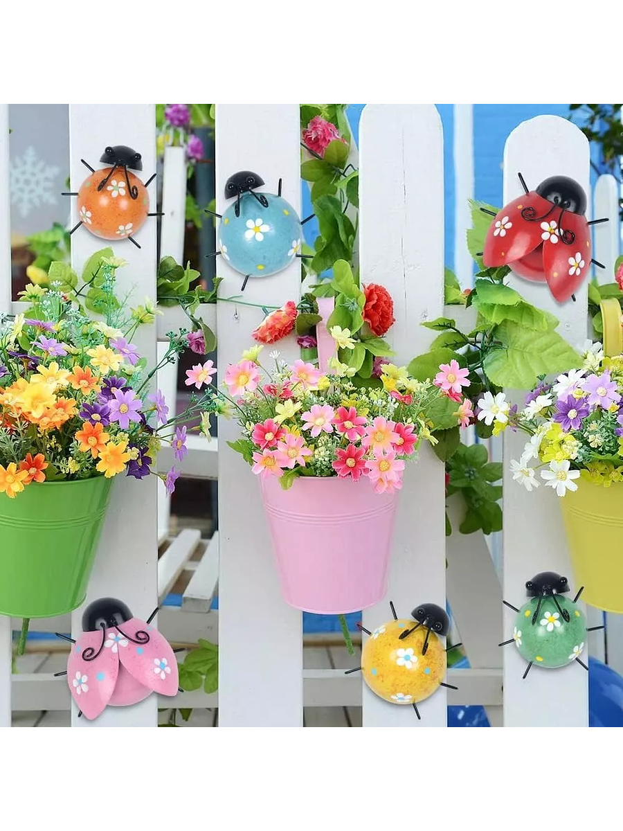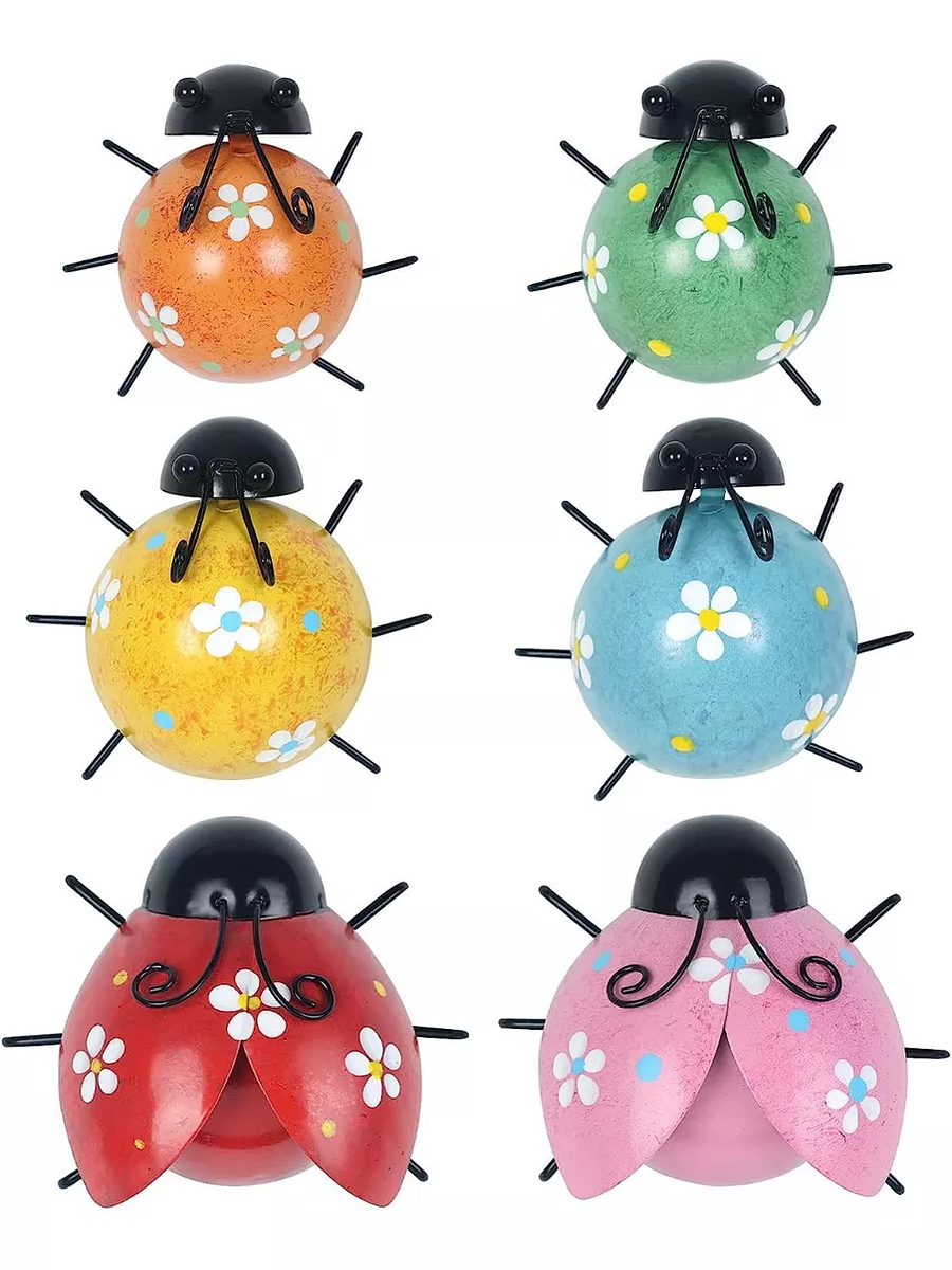 Agrega un toque de color, alegría y encanto natural a tu hogar o jardín con este set de 6 adorables mariquitas decorativas. Hechas a mano en metal resistente y pintadas con colores brillantes, estas figuras aportan vida y personalidad a cualquier espacio.