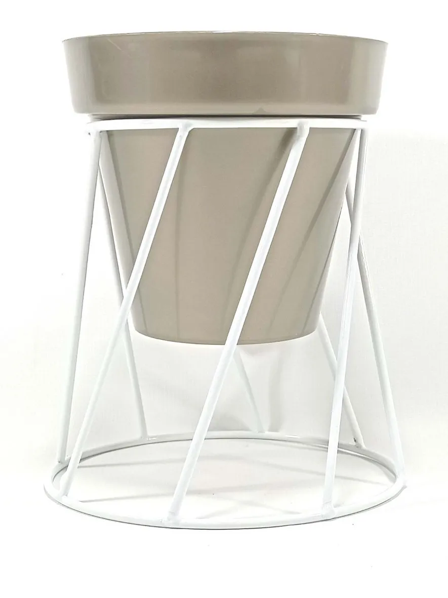 Soporte de Maceta para Mesa más Maceta Plástica Brillante 14cm Blanco