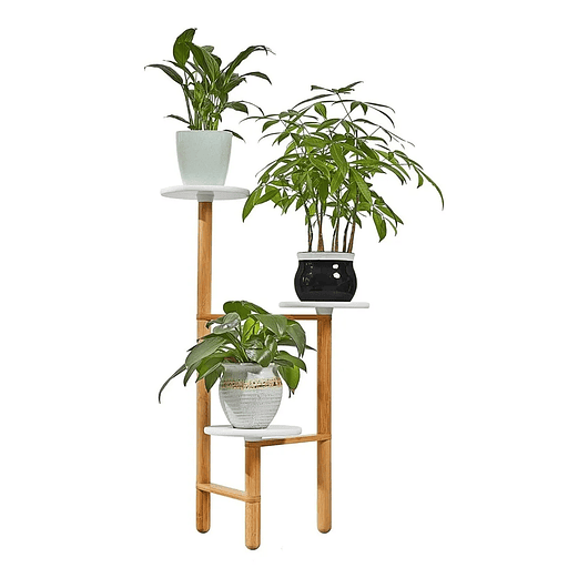 Añade un toque moderno y natural a tus espacios con este macetero de diseño minimalista, elaborado en madera de bambú 100% sólida y libre de químicos, su estilo elegante, con bandejas redondas blancas de 20 cm de diámetro, combina perfectamente con cualquier decoración interior. 🌿